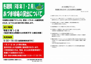 冬期間(1・2月)あづま球場グラウンドの貸出について