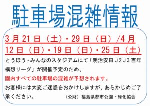 駐車場混雑のお知らせ 3月21日(土)、29日(日)/4月12日(日)、19日(日)、25日(土)