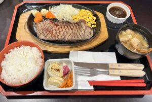 牛ロースステーキ定食 1,200円 手打ち十割蕎麦 1,000円